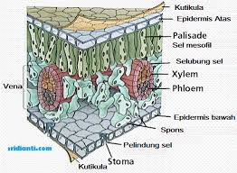 Struktur anatomi daun terdiri dari : epidermis (pelindung), mesofil atau